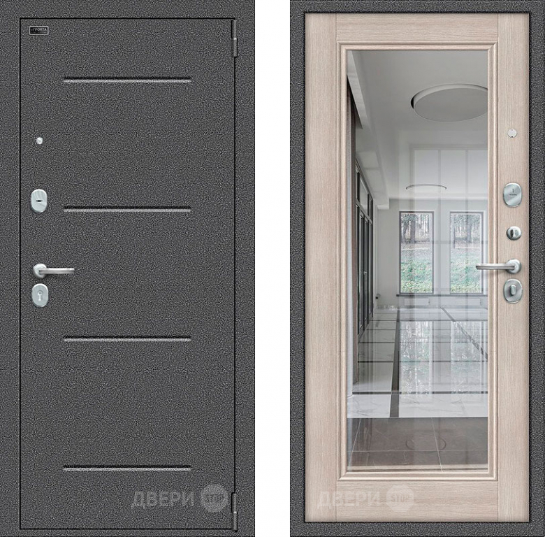 Входная металлическая Дверь Bravo Porta S-2 104/П61 с зеркалом Капучино в Егорьевске 860х2050 мм
