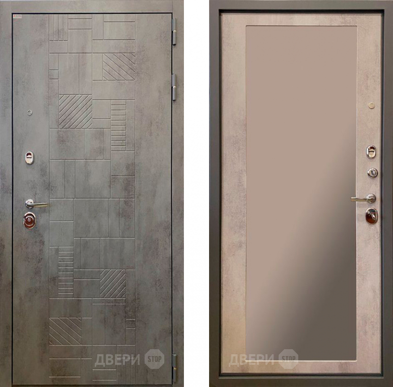 Входная металлическая Дверь Ратибор Тетрис 3К с зеркалом Бетон светлый в Егорьевске 860х2050 мм