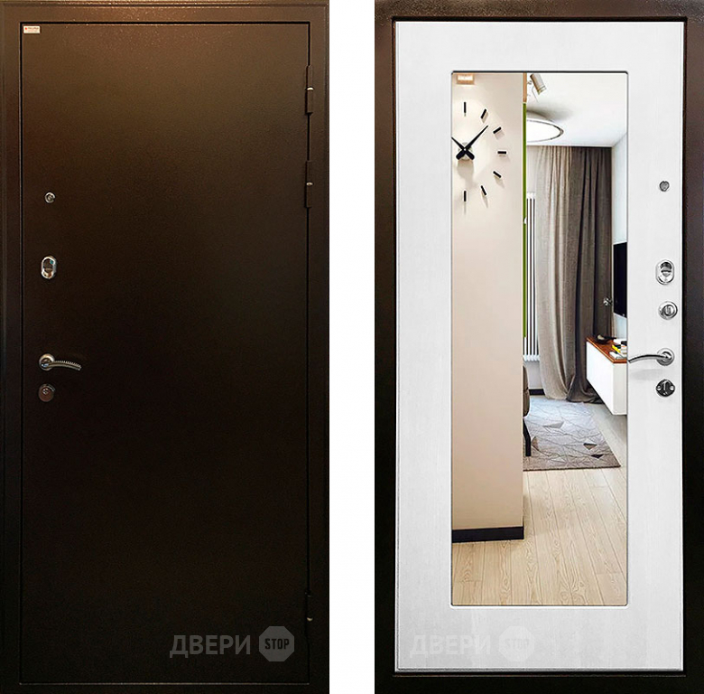 Входная металлическая Дверь Ратибор Милан 3К зеркало Белый ясень в Егорьевске 860х2050 мм