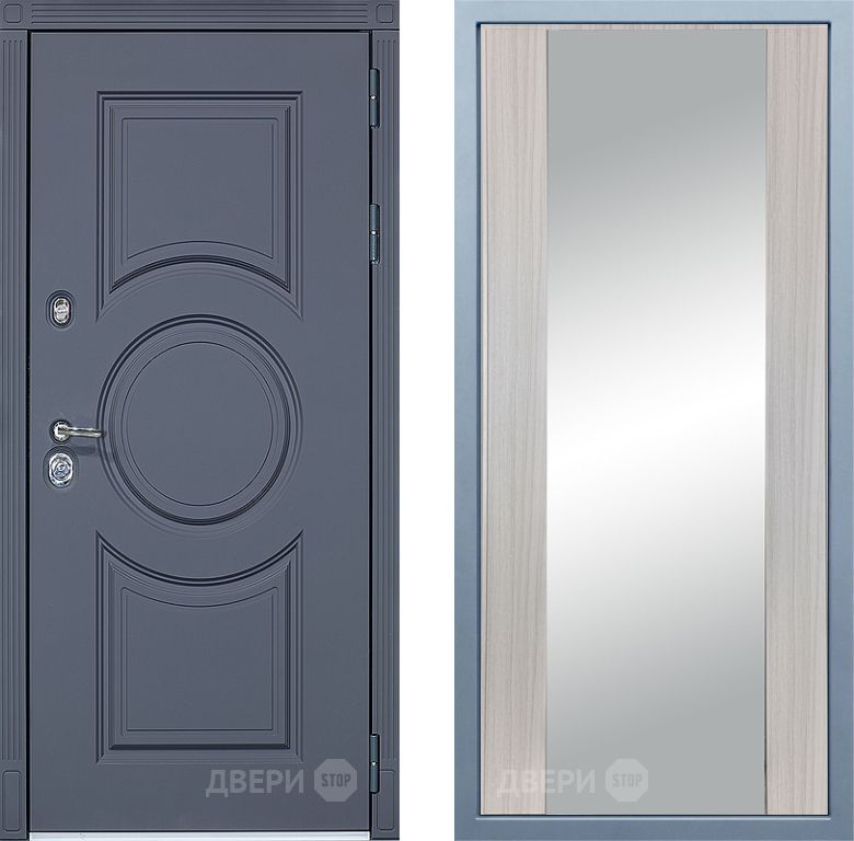 Входная Дверь Дива МХ-30 STR Д-15 Зеркало Сандал белый 860x2050 мм