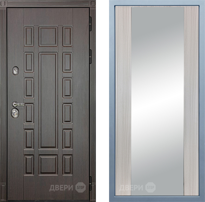 Входная Дверь Дива МХ-53 STR Д-15 Зеркало Сандал белый 960x2050 мм
