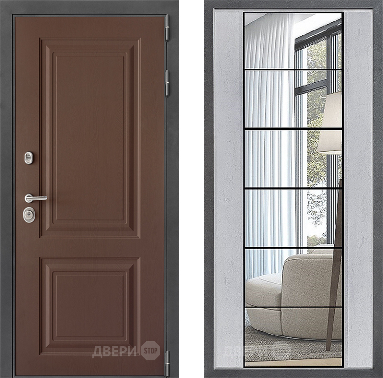 Входная Дверь Дверной континент ДК-3/729 ФЛЗ-2 Зеркало Бетон светлый 960x2050 мм