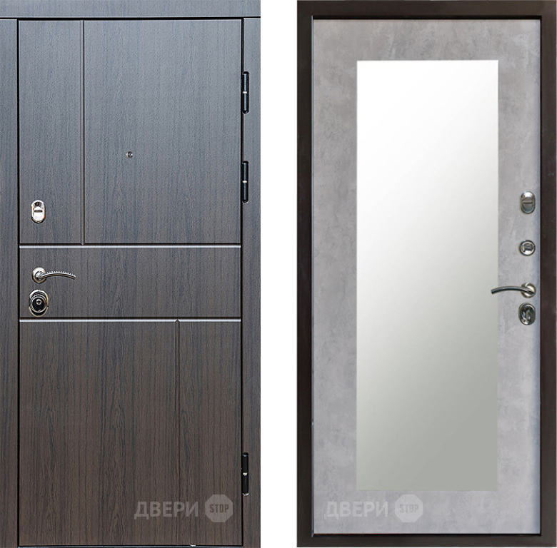 Входная Дверь Престиж Горизонт Венге Зеркло Пастораль Бетон светлый 960x2050 мм
