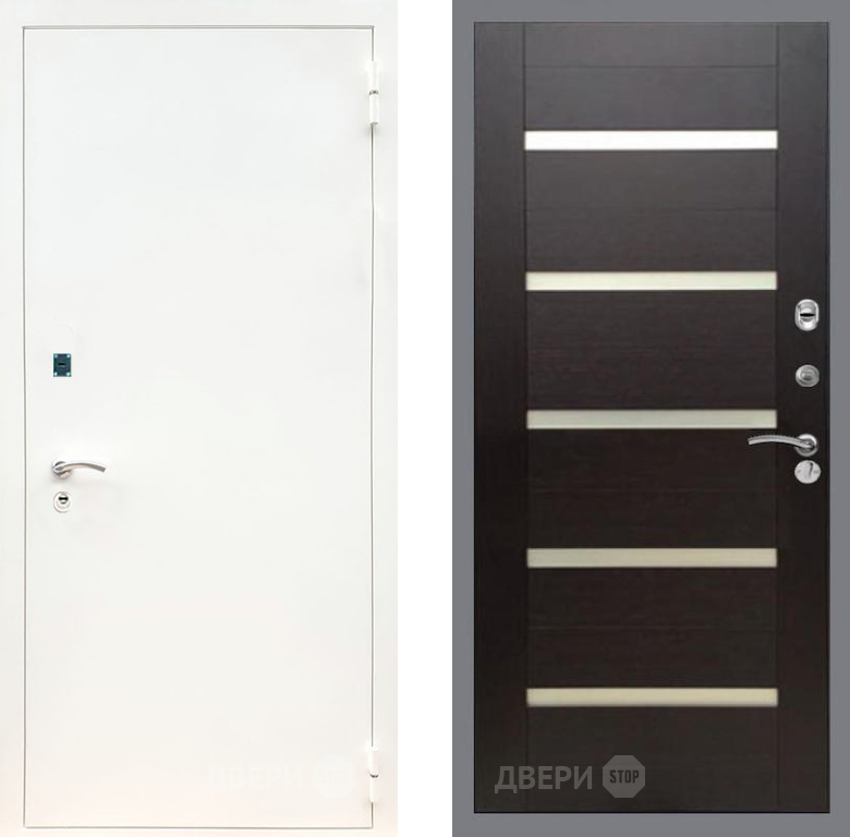 Входная Дверь Рекс (REX) 1А Белая шагрень СБ-14 стекло белое венге поперечный 860x2050 мм
