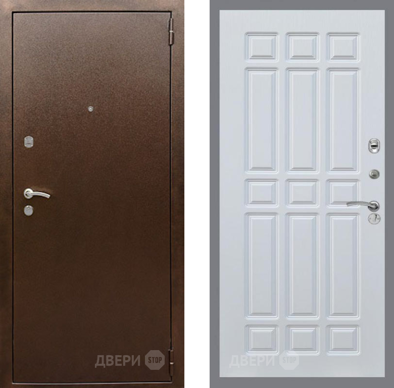 Входная Дверь Рекс (REX) 1А Медный Антик FL-33 Белый ясень 860x2050 мм