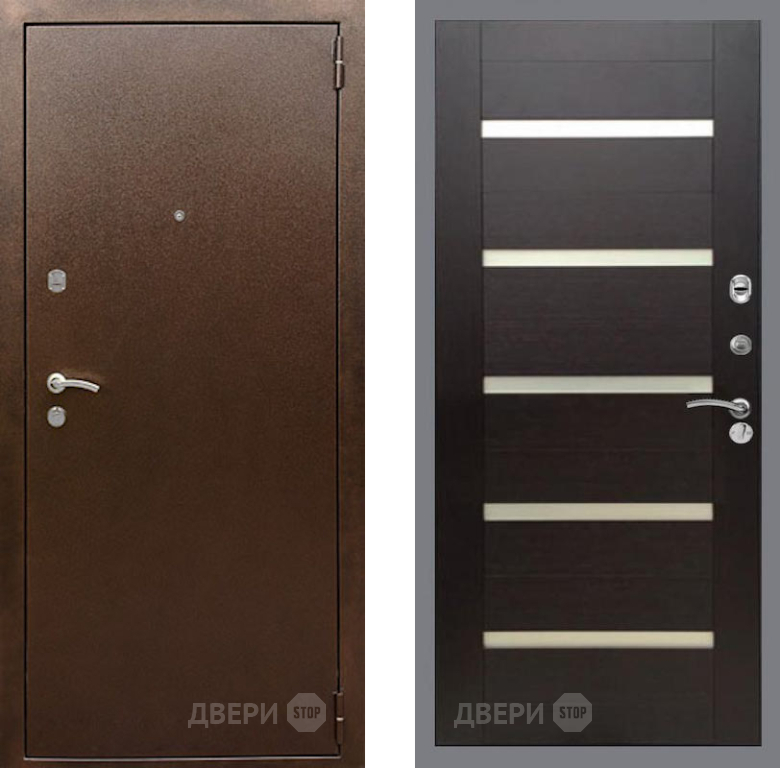 Входная Дверь Рекс (REX) 1А Медный Антик СБ-14 стекло белое венге поперечный 860x2050 мм