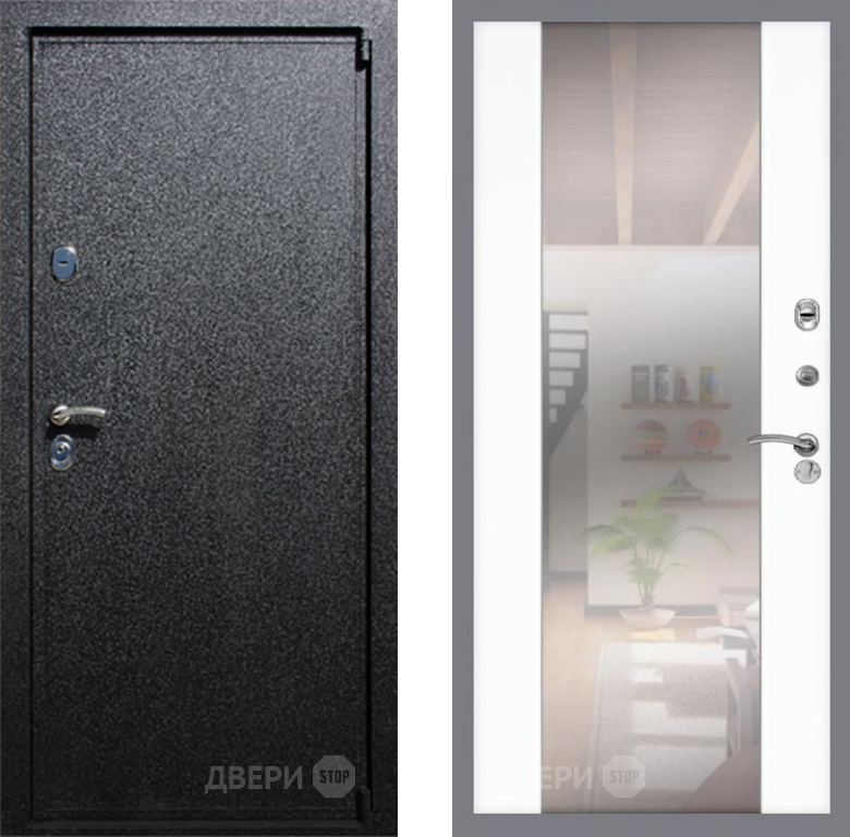 Входная Дверь Рекс (REX) 3 СБ-16 Зеркало Силк Сноу 860x2050 мм