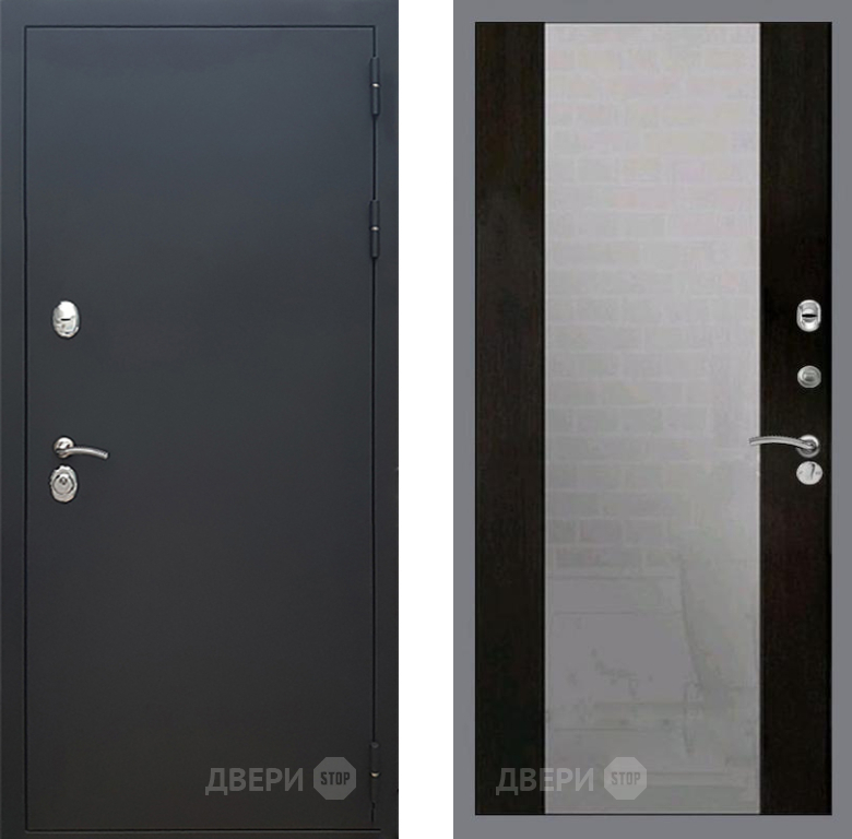 Входная Дверь Рекс (REX) 5 Черный Муар СБ-16 Зеркало Венге 860x2050 мм