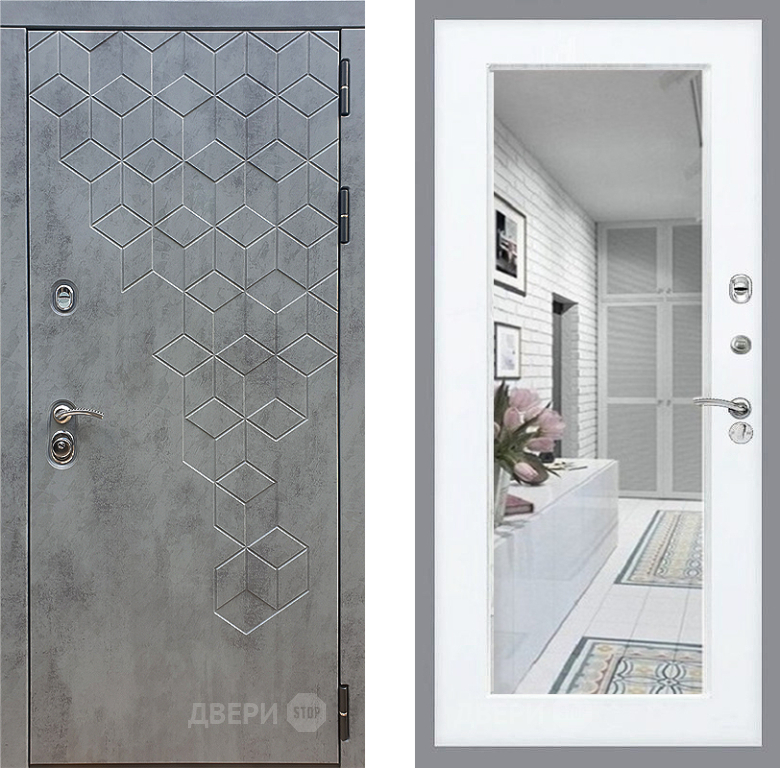 Входная Дверь Стоп БЕТОН Зеркало Силк Сноу 860x2050 мм