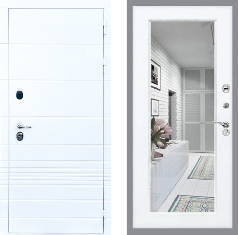 Входная Дверь Стоп ТРЕНДО Зеркало Силк Сноу 960x2050 мм